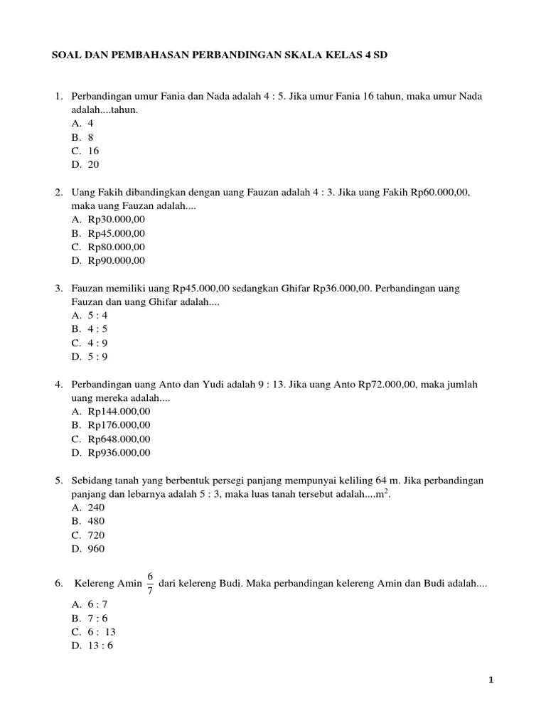 Soal matematika kelas 5 semester 1 kurikulum 2013 revisi 2017 ini terdiri dari bab kecepatan, pecahan, skala dan debit.